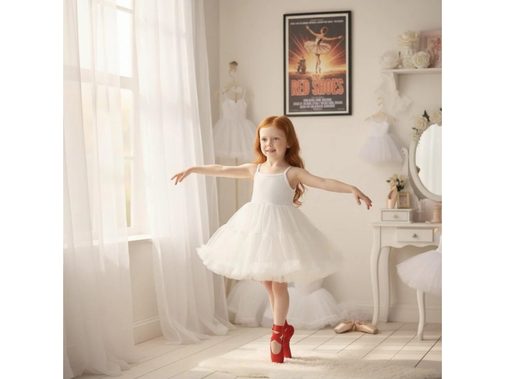 Objev kouzlo klasické baletní elegance v moderním pojetí s těmito Petite Spaghetti tutu šaty. Šaty mají lehoučkou šifónovou sukni tvořenou vrstvami jemného materiálu, které vytvářejí nádherně nadýchaný objem, a elastický bavlněný top, který zajišťuje maximální pohodlí při nošení. Díky tenkým spaghetti ramínkům působí šaty elegantně a vzdušně, ideální jak na slavnostní události, tak pro každodenní nošení malých princezen. Výrazné barvy a textura šifónu zajišťují krásný vzhled na fotografiích i v pohybu.