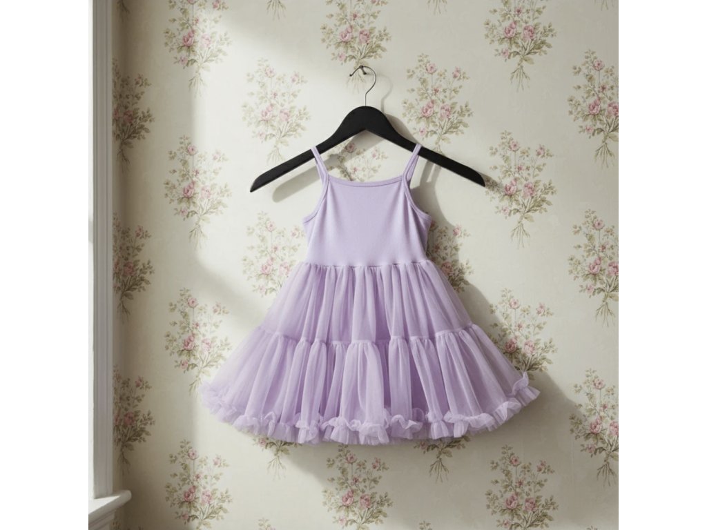 Okouzlující dívčí tutu šaty s tenkými spaghetti ramínky, z jemného šifónu a komfortního elastického bavlněného topu – dokonalé pro party, focení i každodenní fantazie.
