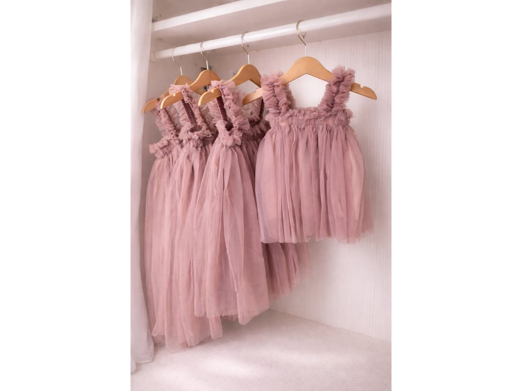 DOLLY 2V1 šaty mají roztomilá volánková ramínka a áčkový střih, který krásně splývá a je pohodlný na nošení. Největší kouzlo těchto šatů spočívá v jejich variabilitě – lze je nosit jako šaty, nebo ramínka jednoduše založit dovnitř a během chvilky z nich vytvořit tutu sukni. Tento víceúčelový model je perfektní pro slavnostní příležitosti, volný čas i focení a přitom zůstává pohodlný a příjemný na nošení po celý den.